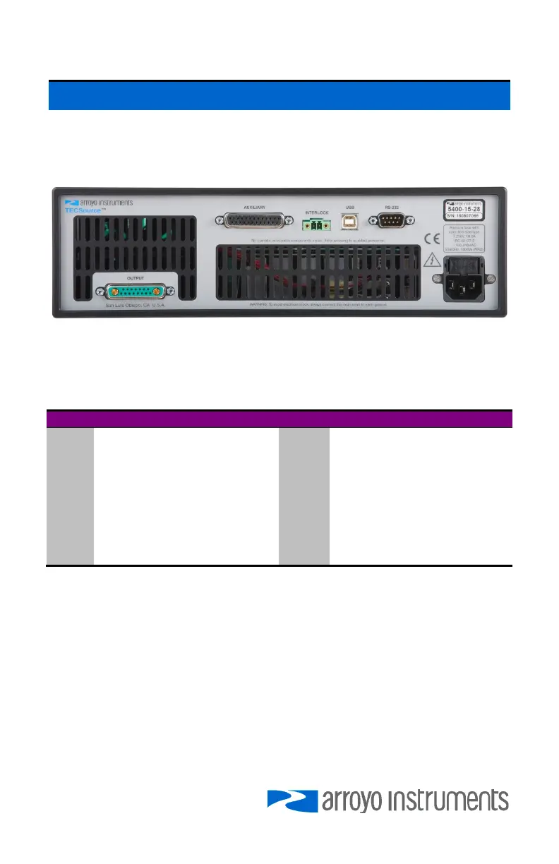 connectors on the rear panel of the TECSource: Output connector, Auxiliary