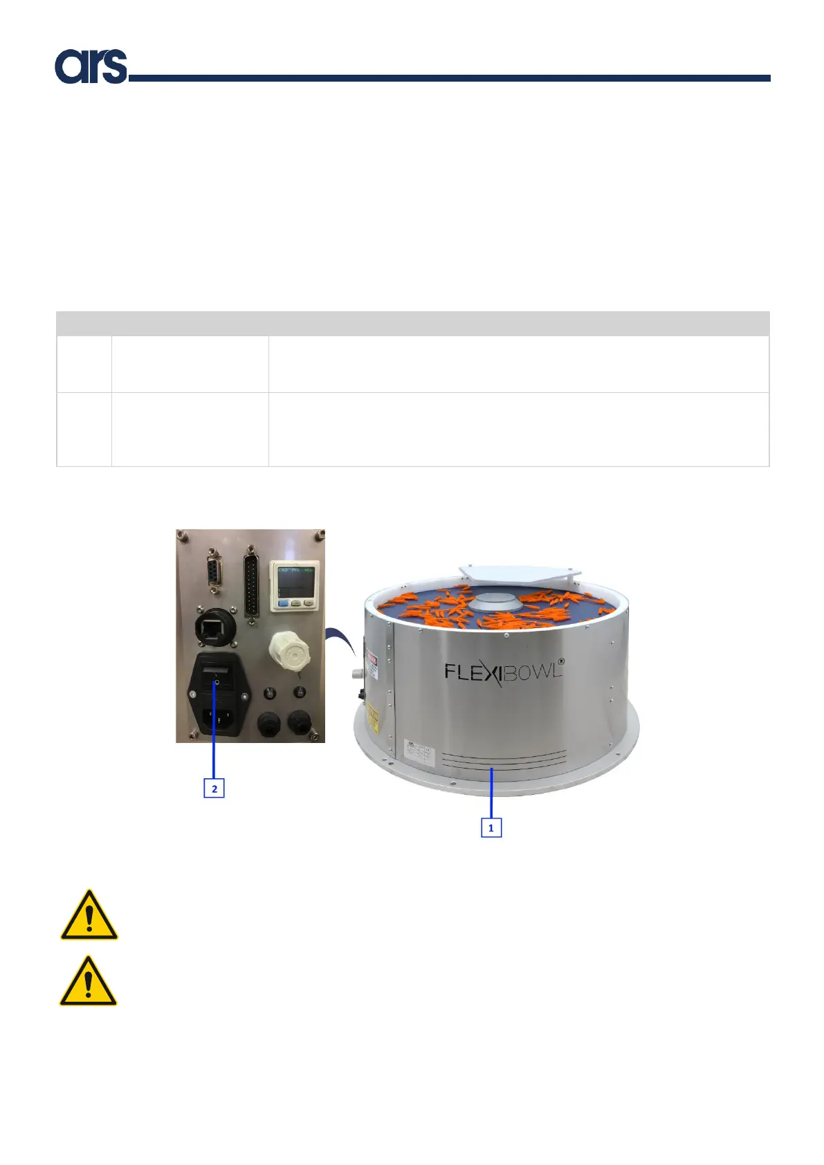 In case of emergency, disconnect the power supply connected to the control panel to safely disable the Flexibowl®