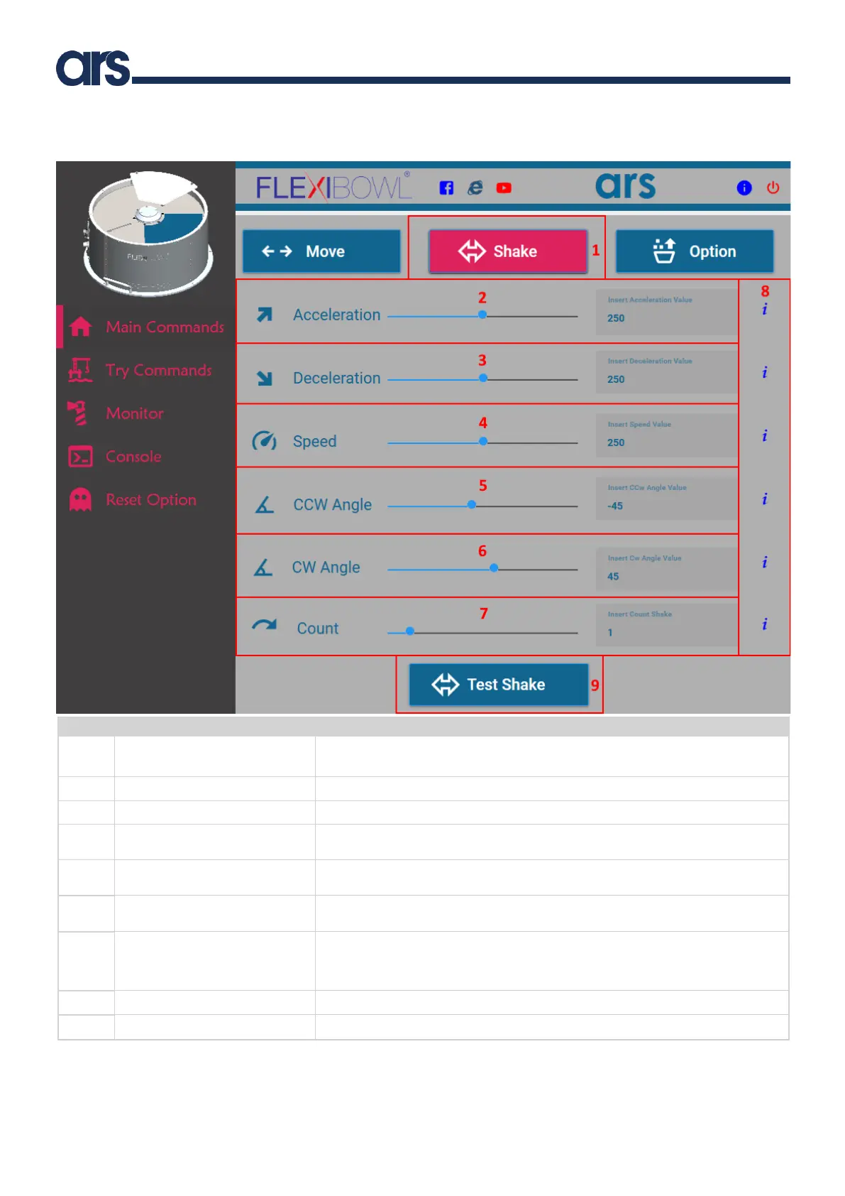 Example: sh_count=3 means that the Flexibowl® will move counterclockwise at