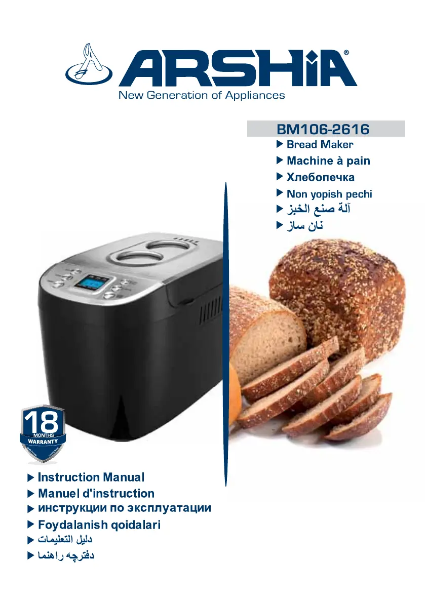 If the ARSHIA Bread Maker displays “HHH” after pressing the START/STOP button, it means the internal temperature is too high for baking. To resolve this, press the START/STOP button again, unplug the bread maker, remove the bread pan, and leave the cover open until the bread maker cools down.