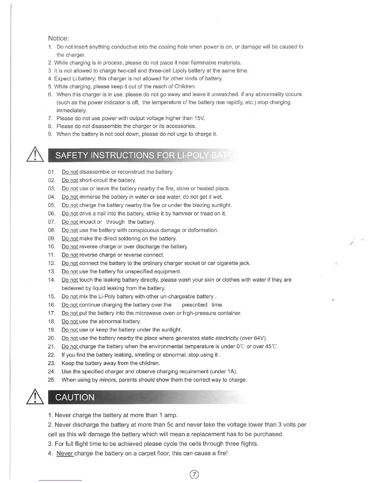 Art-Tech 784251 - SAFETY INSTRUCTIONS FOR LI-POLY BATTERIES; Battery Charging CAUTIONS