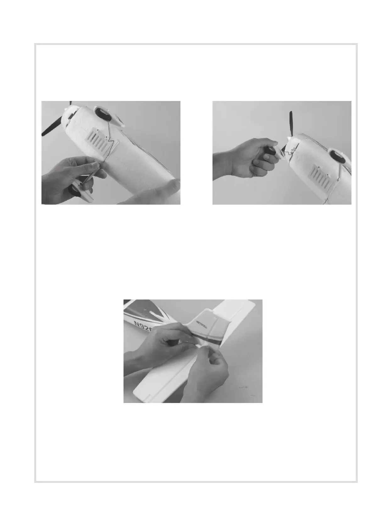 Insert both rear and front landing gear into the plastic openings on the underside of the