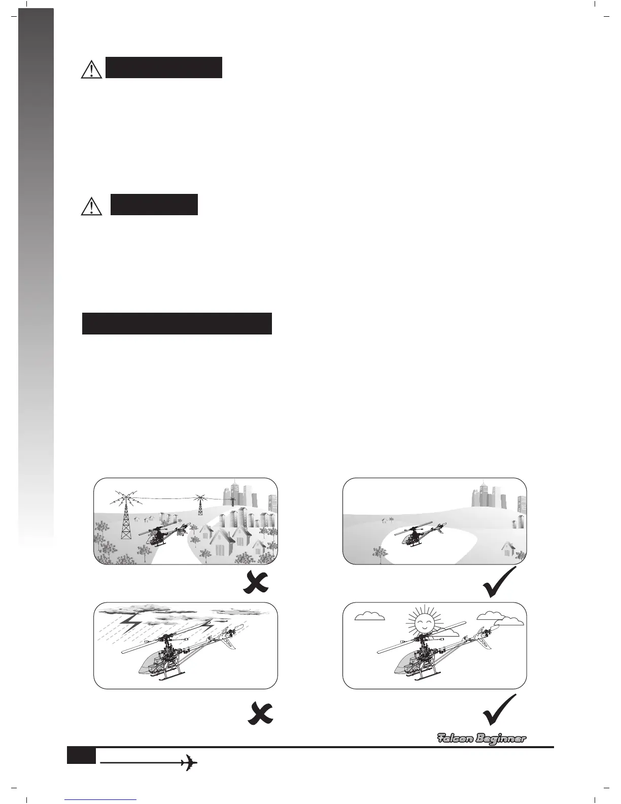 trees or high voltage lines to ensure the safety of yourself and others and your model. Do not fly your