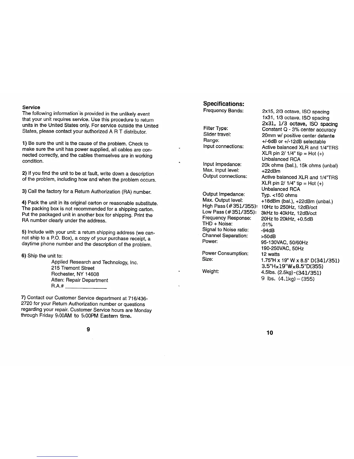 Art 341 - Service and Specifications; Service Procedure; Specifications
