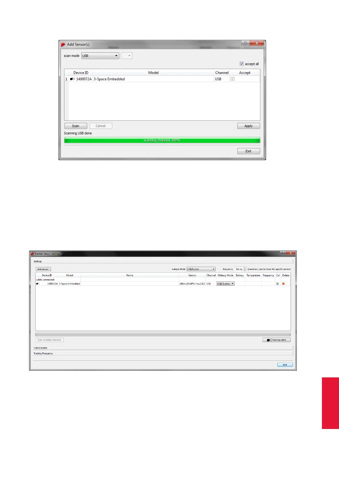 The dialogue Inertial Sensor Settings (see figure 7.7 on page 113) now shows all available