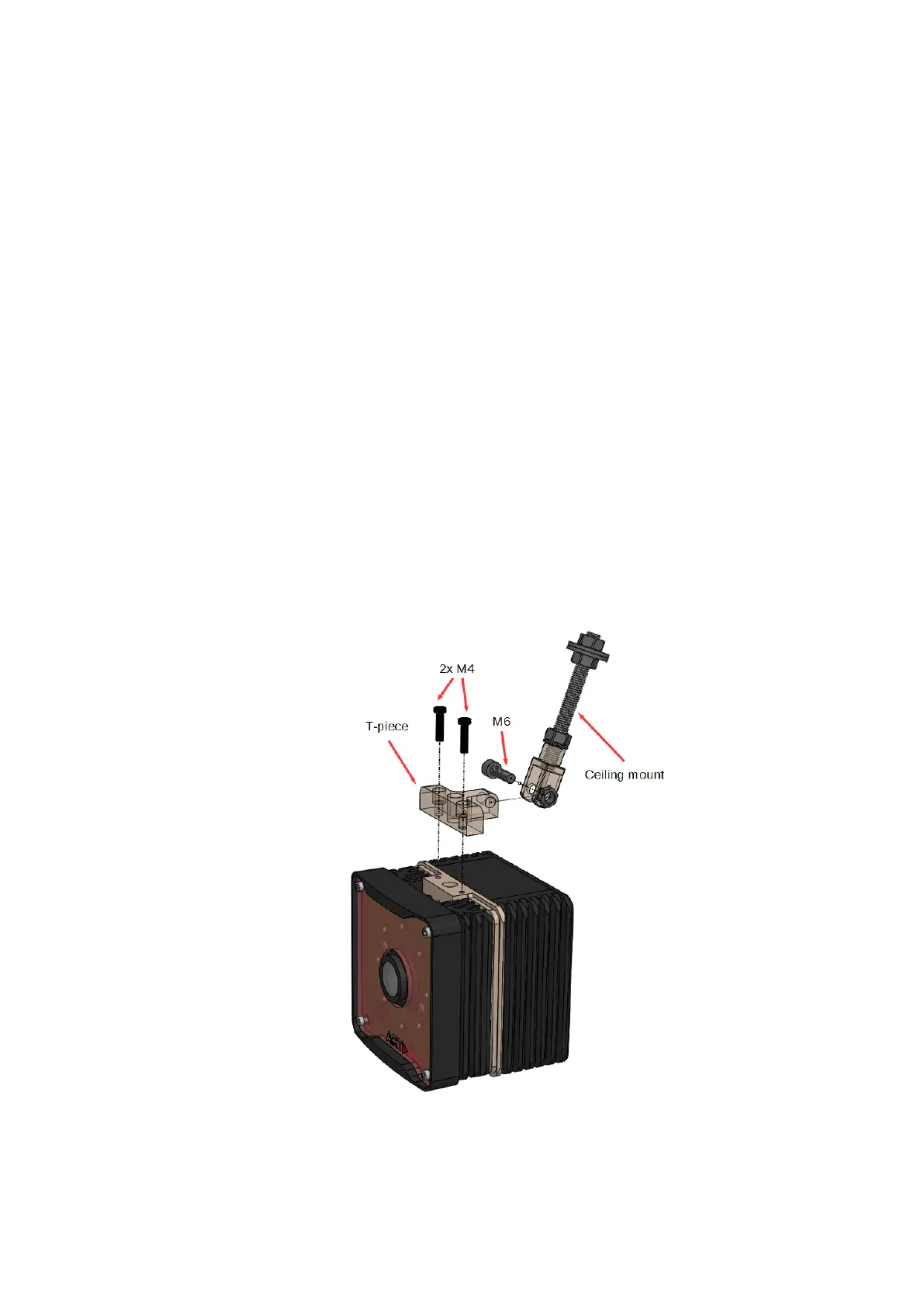 flexibility, the T-piece can be mounted pointing forward or backward. Note, the ceiling