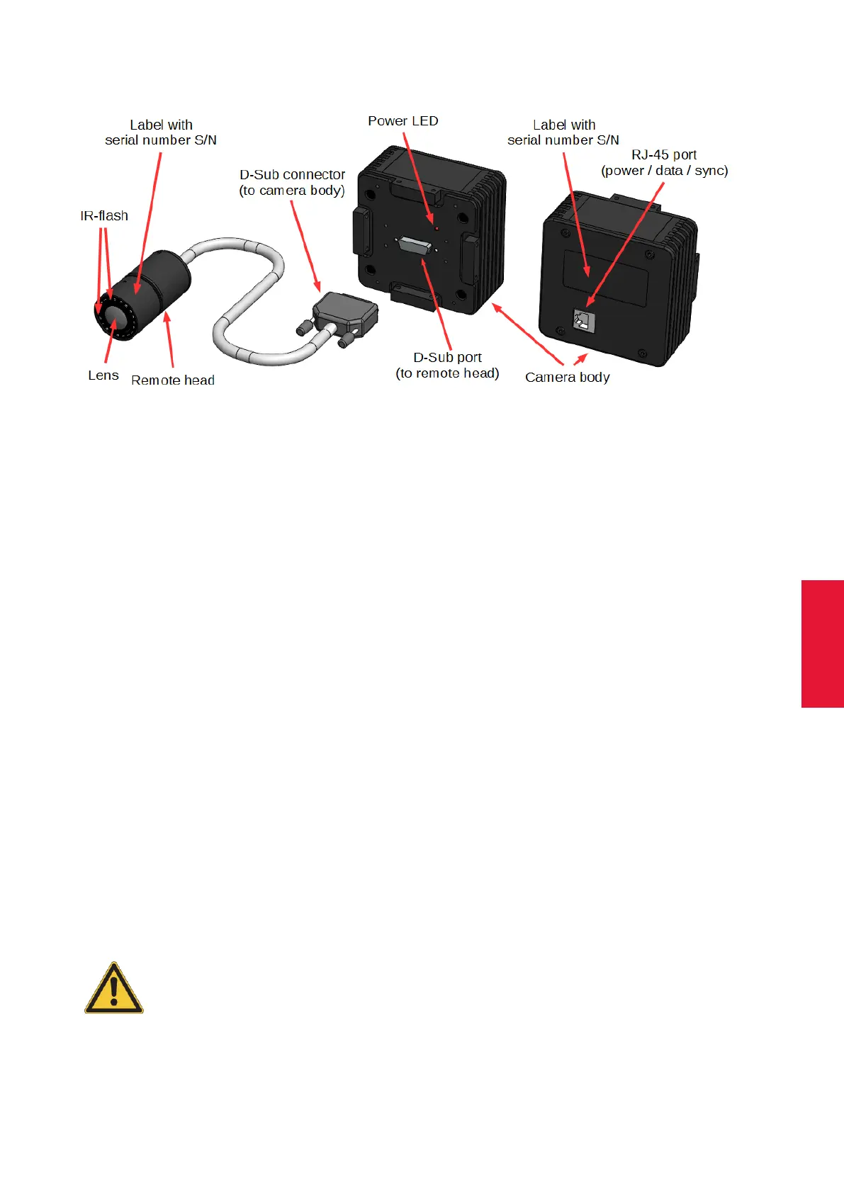 not use standard screws for connection of the remote camera head