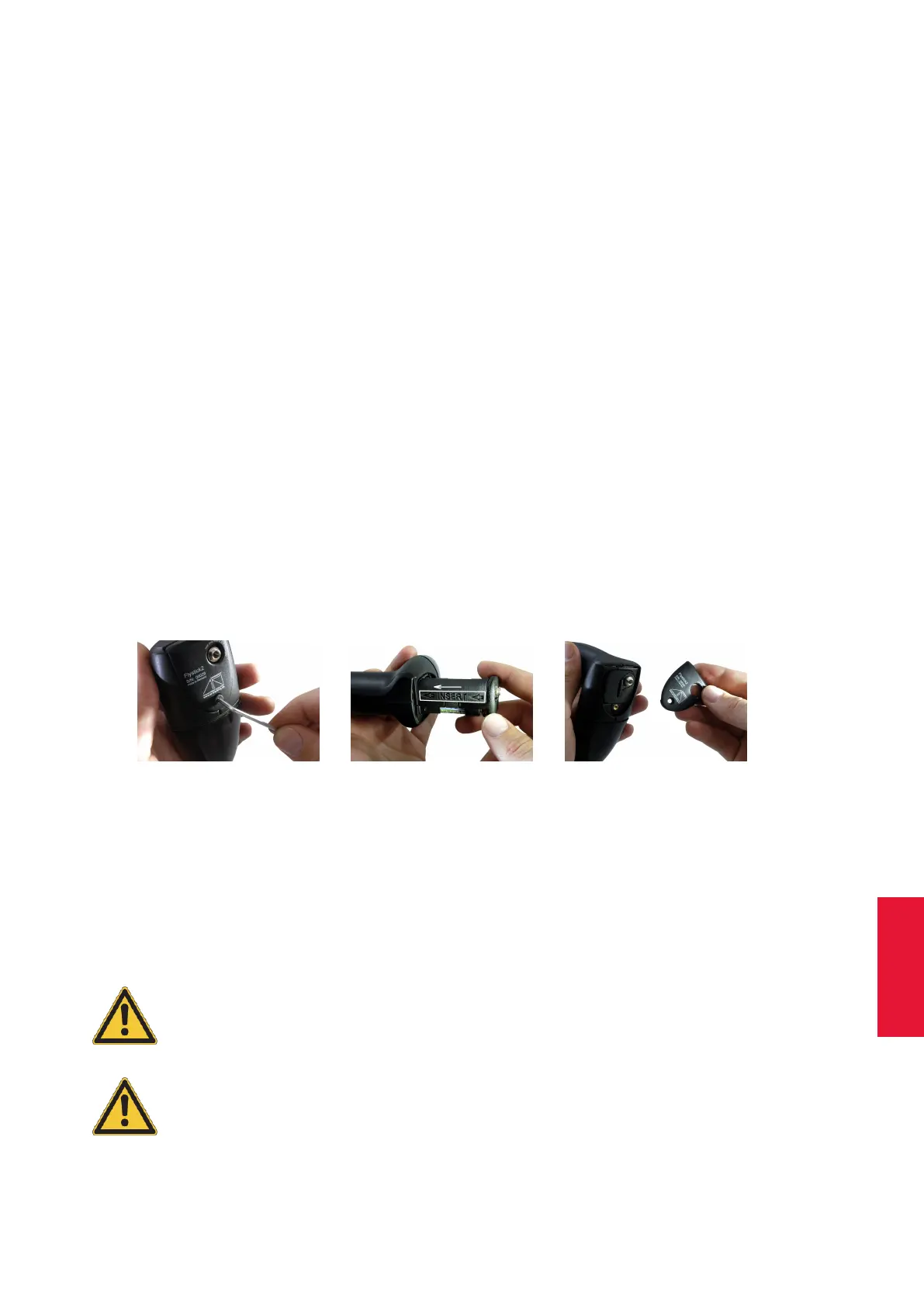 The battery compartment is at the lower end of the handle. It is fixed with a single screw