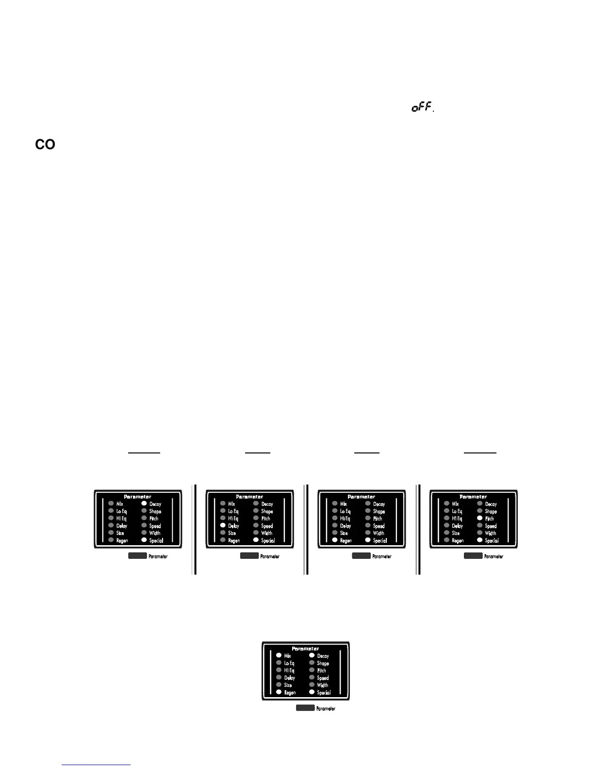 If Engine Bypass was selected, the Mix, Regen, Decay, and Special LEDs will flash.