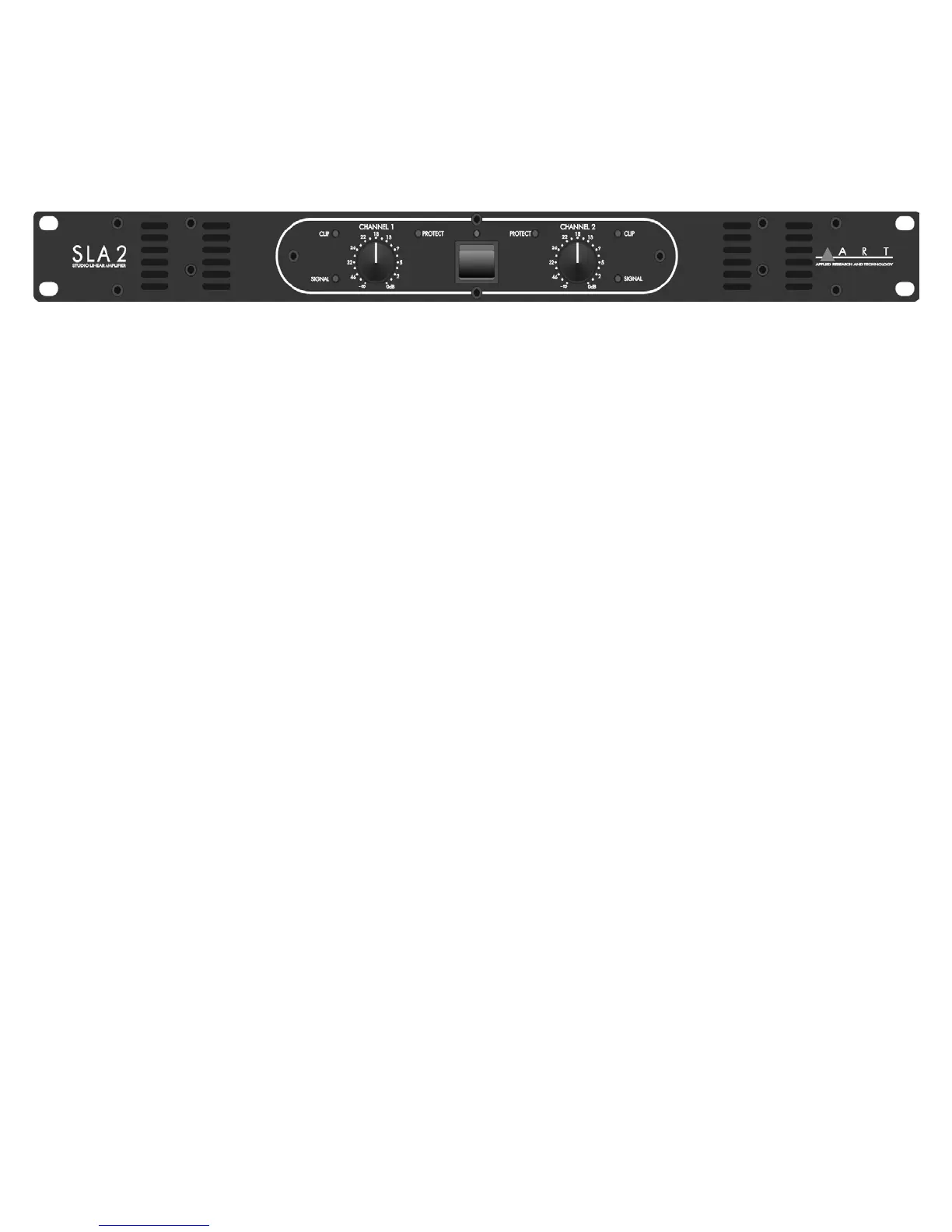 The dials for channel one and channel two’s volume attenuators are
