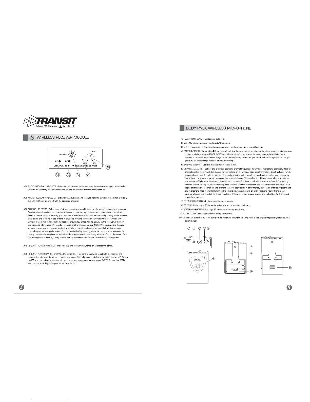 Art Transit - Wireless Receiver Module Operation; Body Pack Wireless Microphone