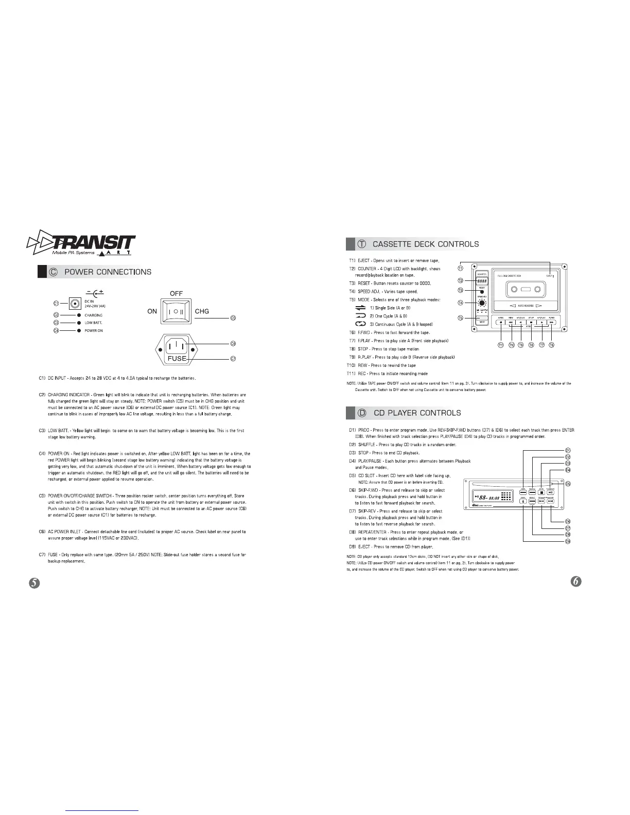 Art Transit - Power Connection Details; Cassette Deck Operation