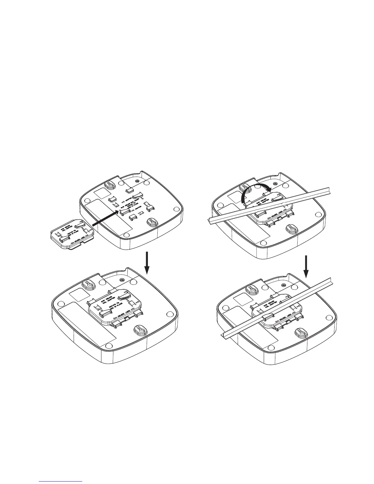 The figure below shows you how to use the adapter to clip the access point to a 9/16” ceiling