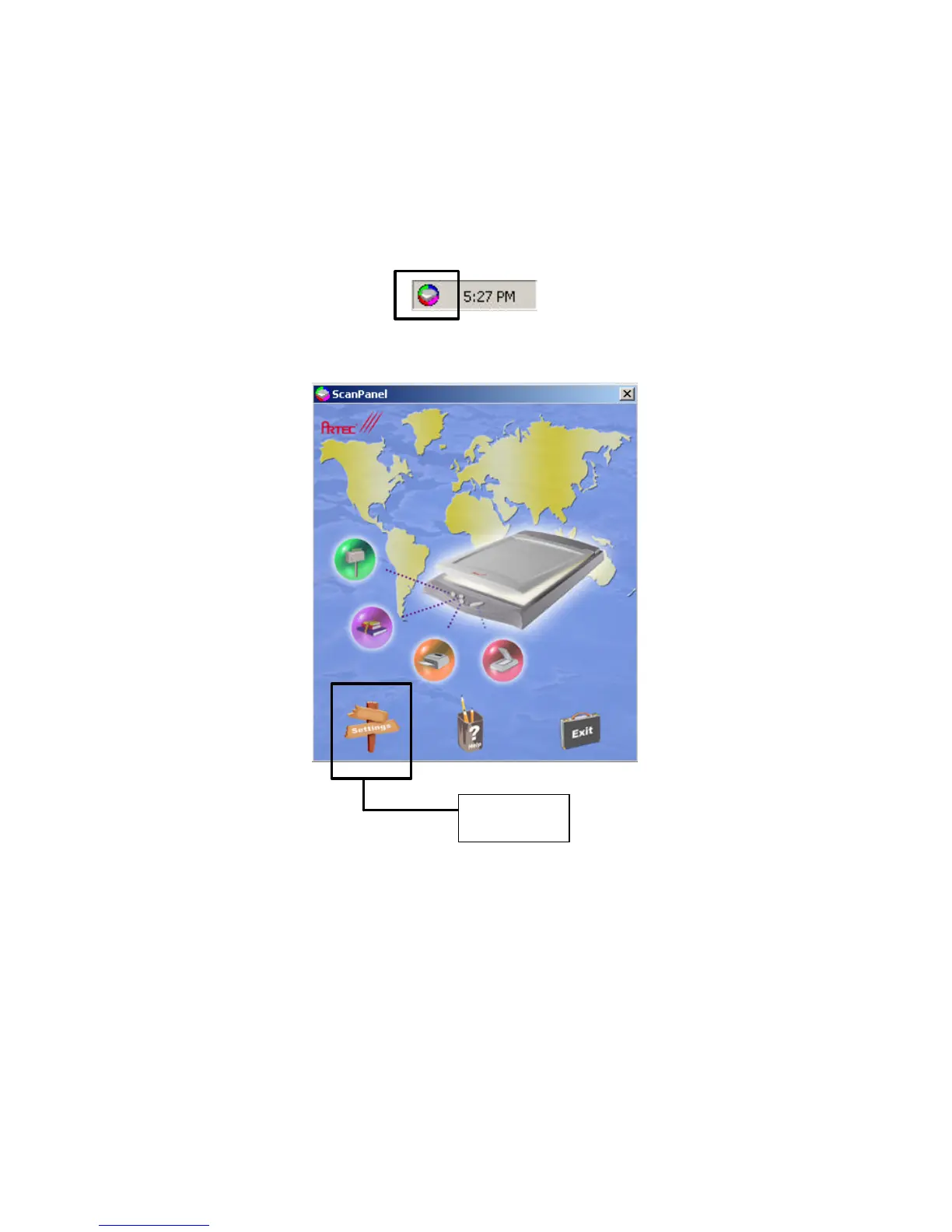will prompt you to the ScanPanel software base execution and settings.