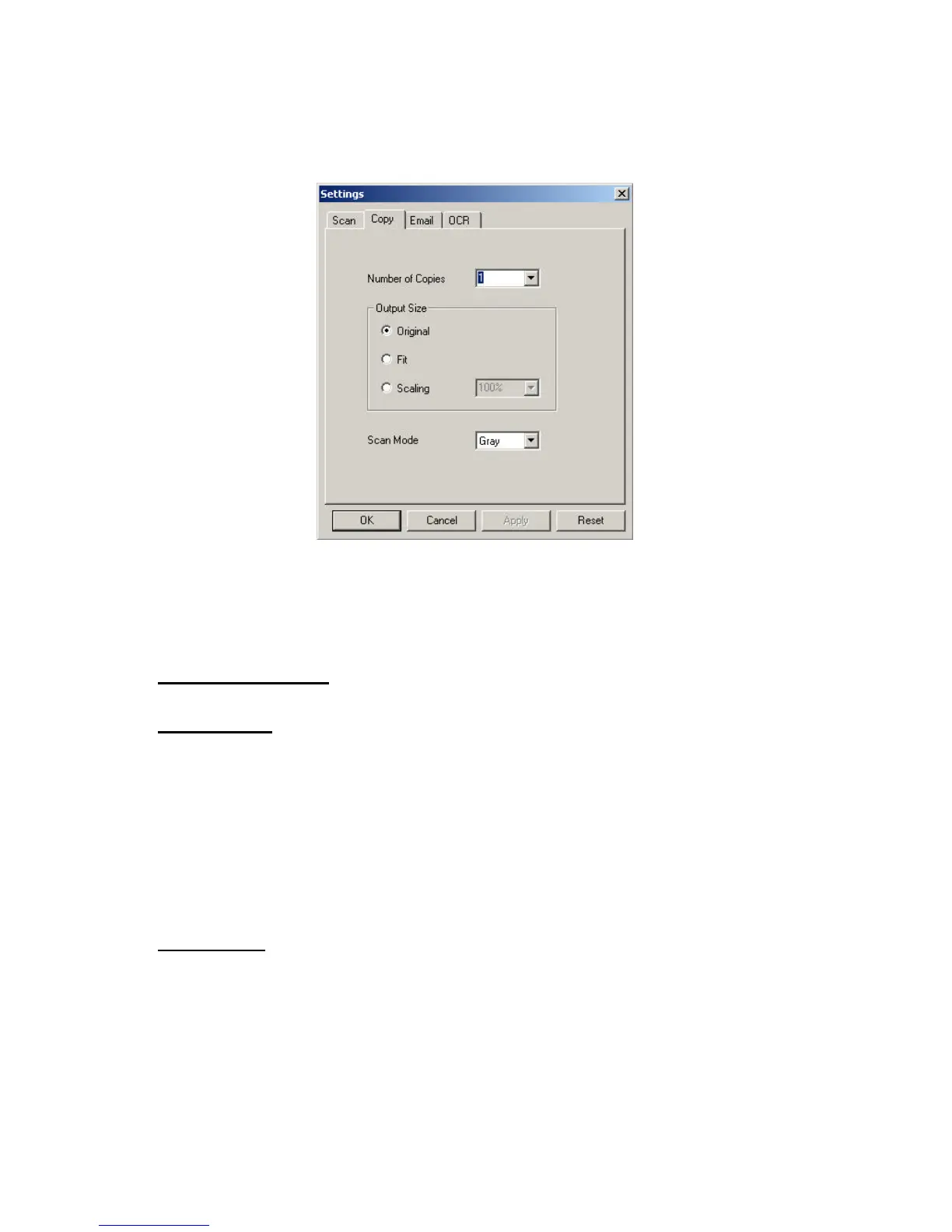 Scaling – setting the scale for the image to be printed from the printer.