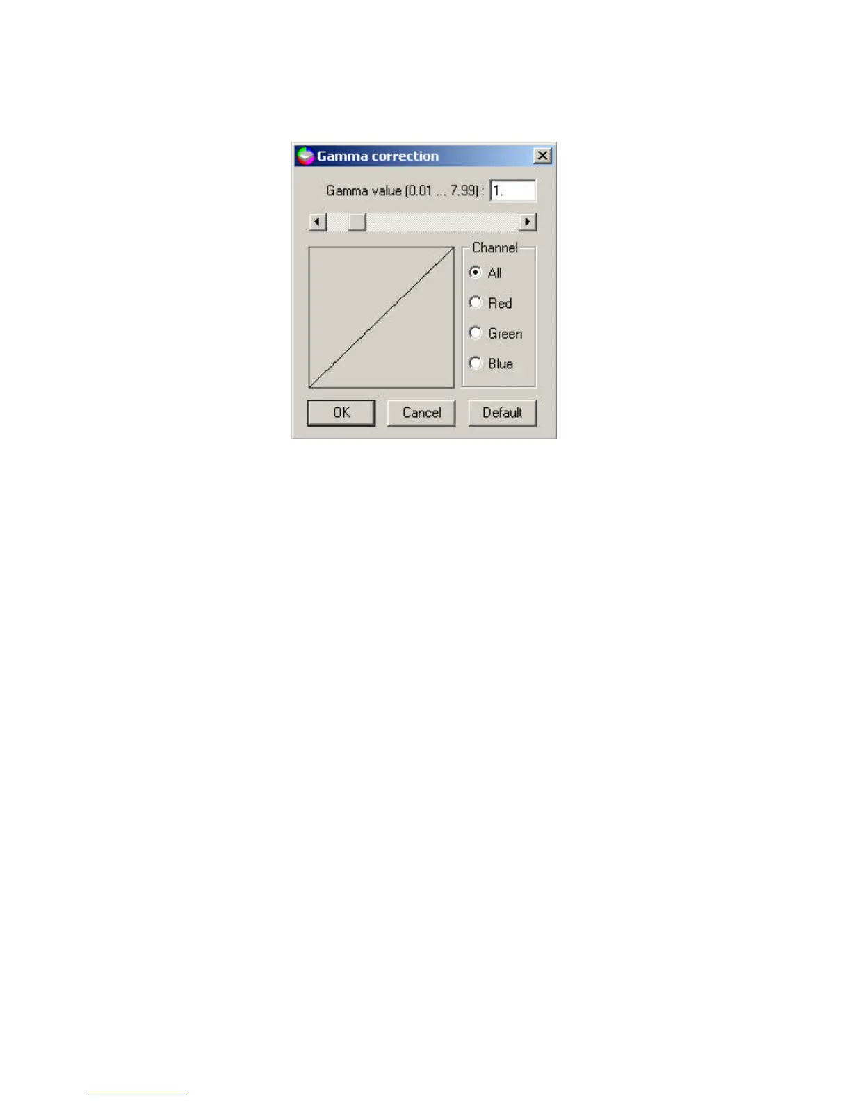 The available gamma value ranges from 0.01 to 7.99. The default value is