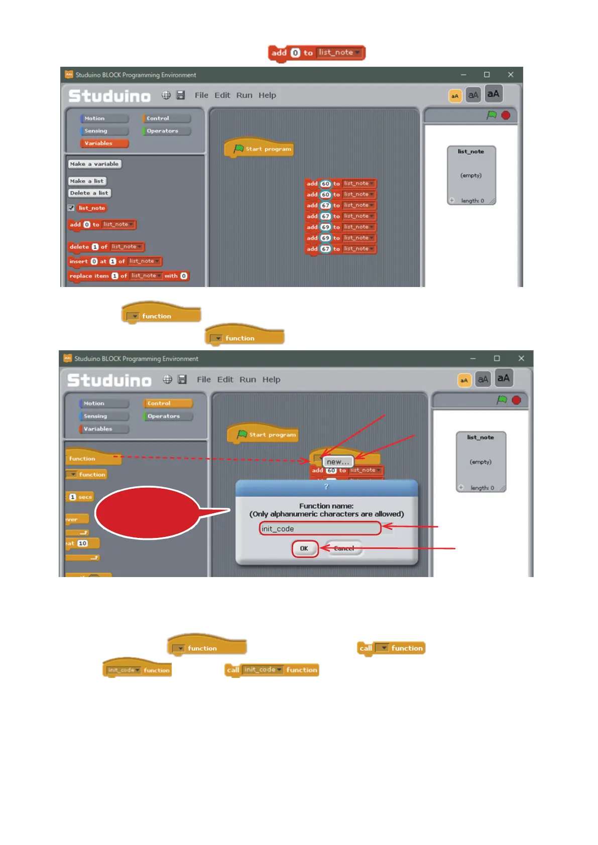. Now click on the ▼ in the block and choose new.... Name the function init_code.