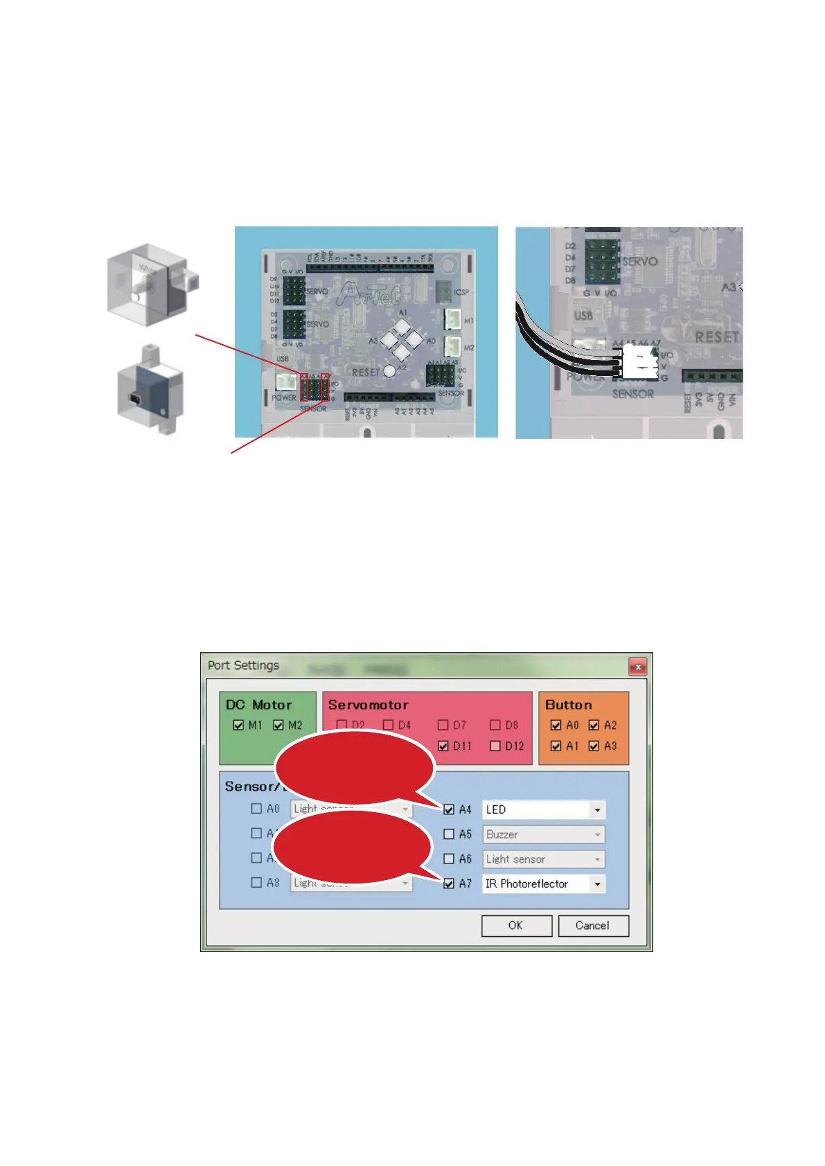 dialog box. Check A7 under Sensor/LED/Buzzer and choose IR Photoreector. You’ll also need to check