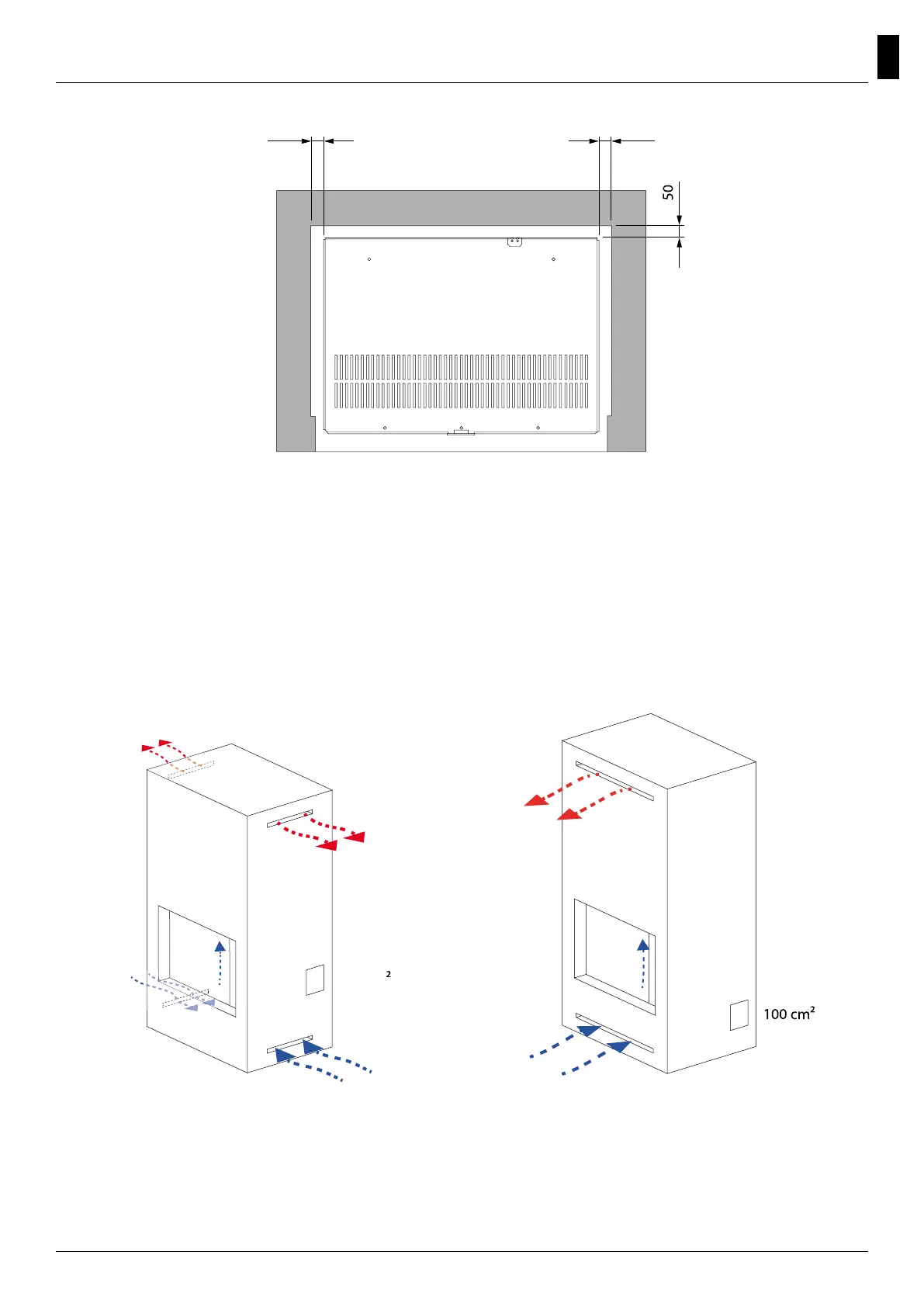 below must not be obstructed by the base or other elements placed inside the installation niche. The air