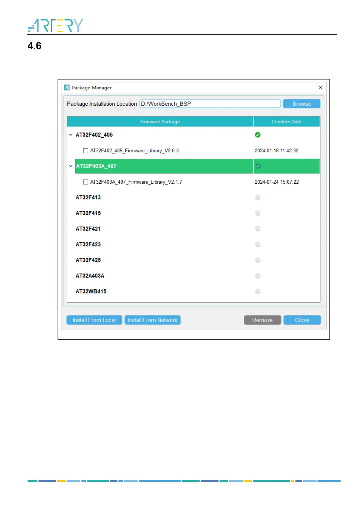 The installed package is stored in the “WK_AT32xxx” directory, such as WK_AT32F425.