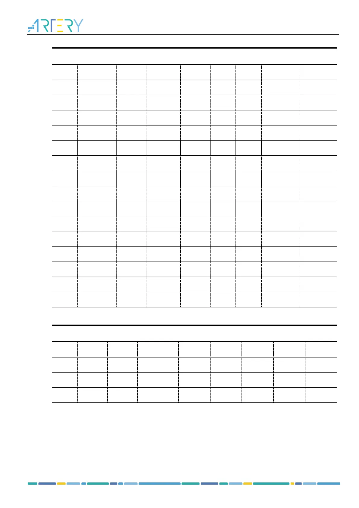 ARTERY AT32F421C8T7 - Table 6-2 Multiplexed Function Configuration for Port B Using GPIO_B MUX* Register; Table 6-3 Multiplexed Function Configuration for Port F Using GPIO_F MUX* Register
