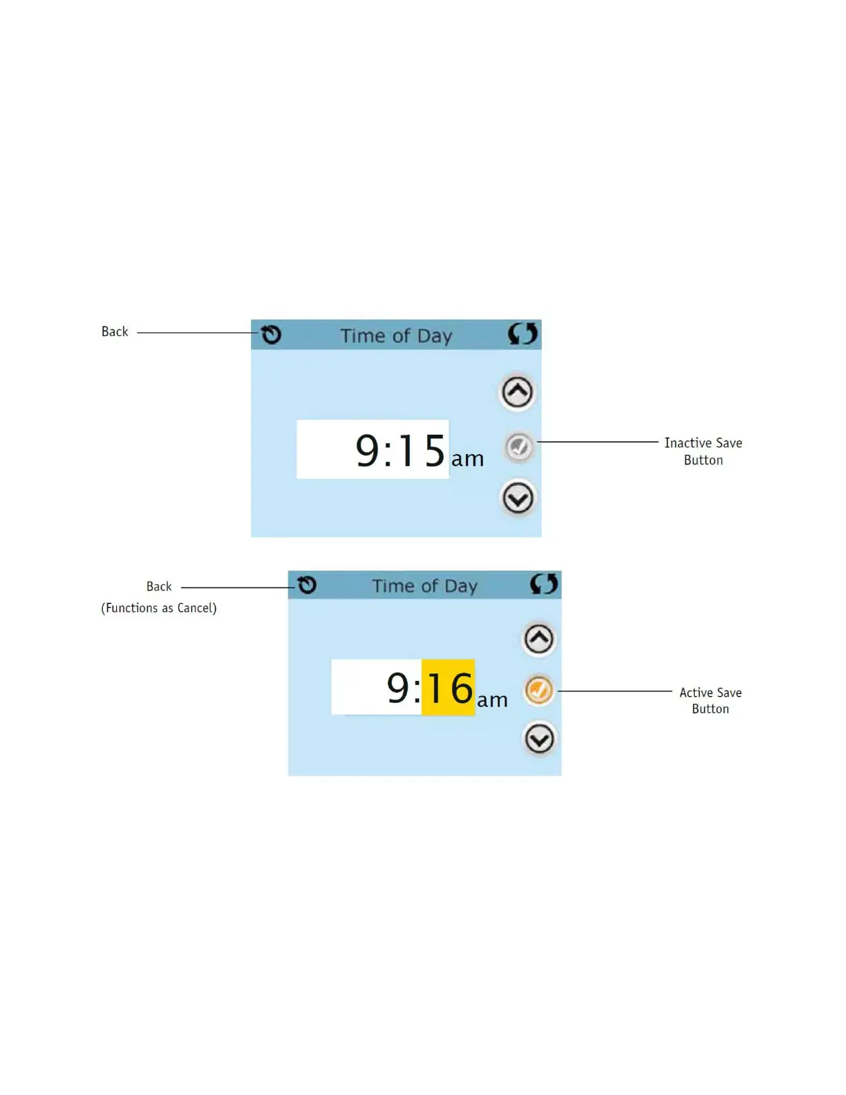 save, while the Back button will Cancel. If the screen times out due to no activity it will