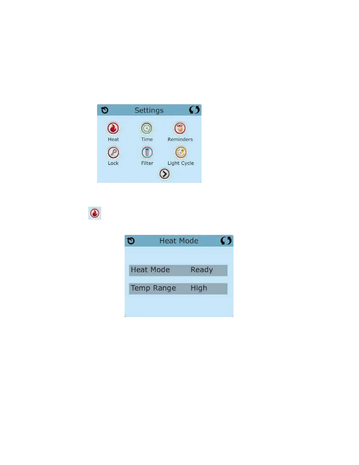 The Heat Icon takes you to a screen where you control the Heat Mode and the