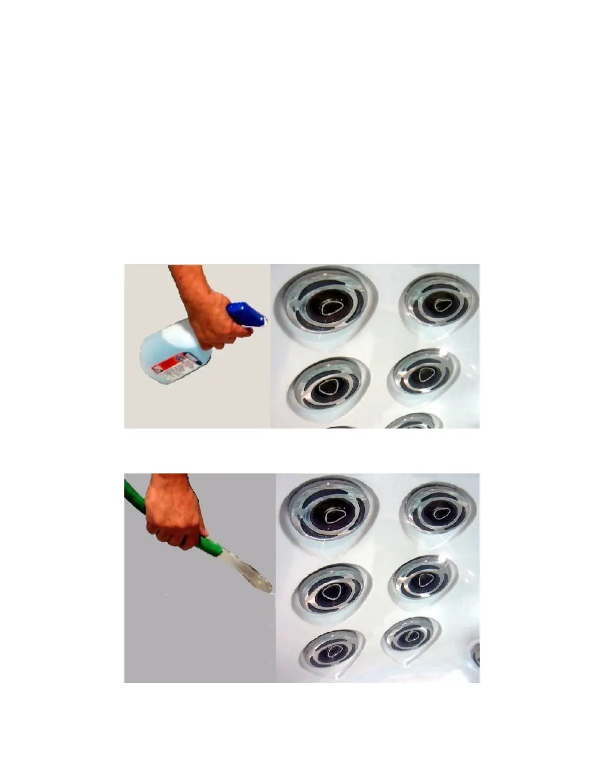 1) Spray jet inserts with a mixture of 1 part vinegar to two parts warm water and let