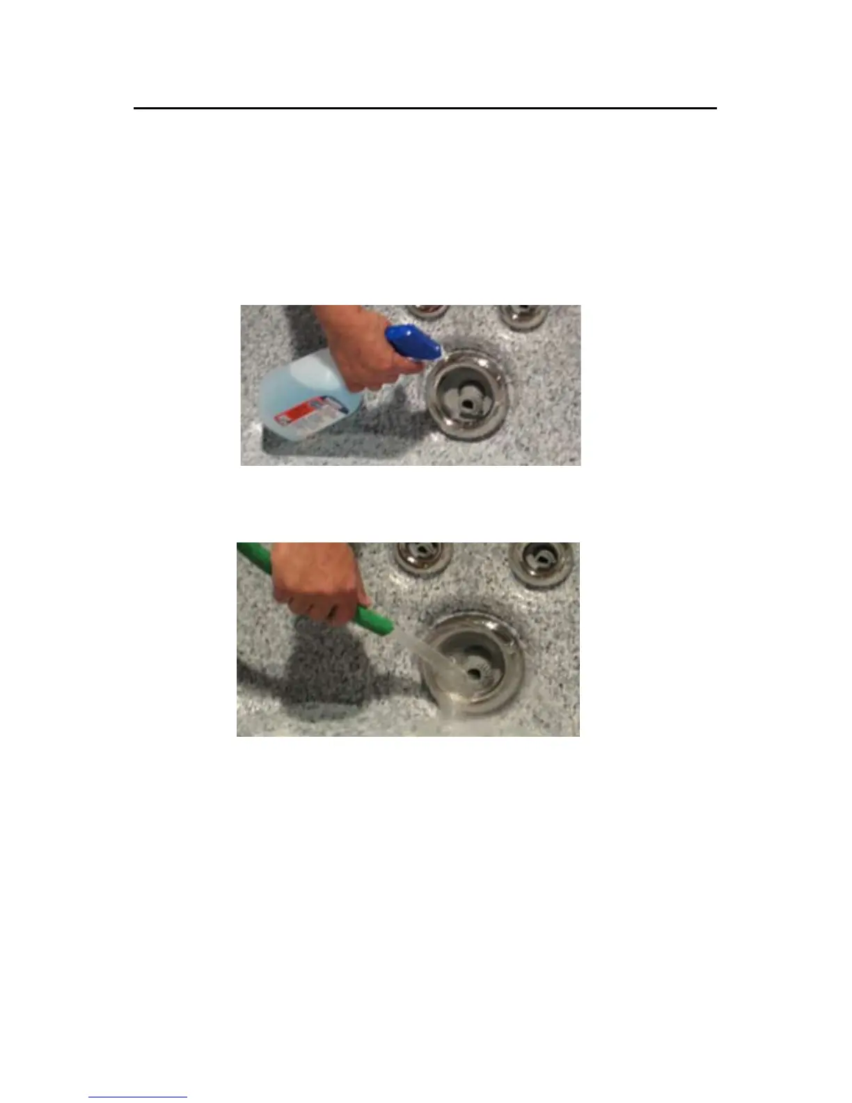1) Spray jet inserts with a mixture of 1 part vinegar to two parts warm