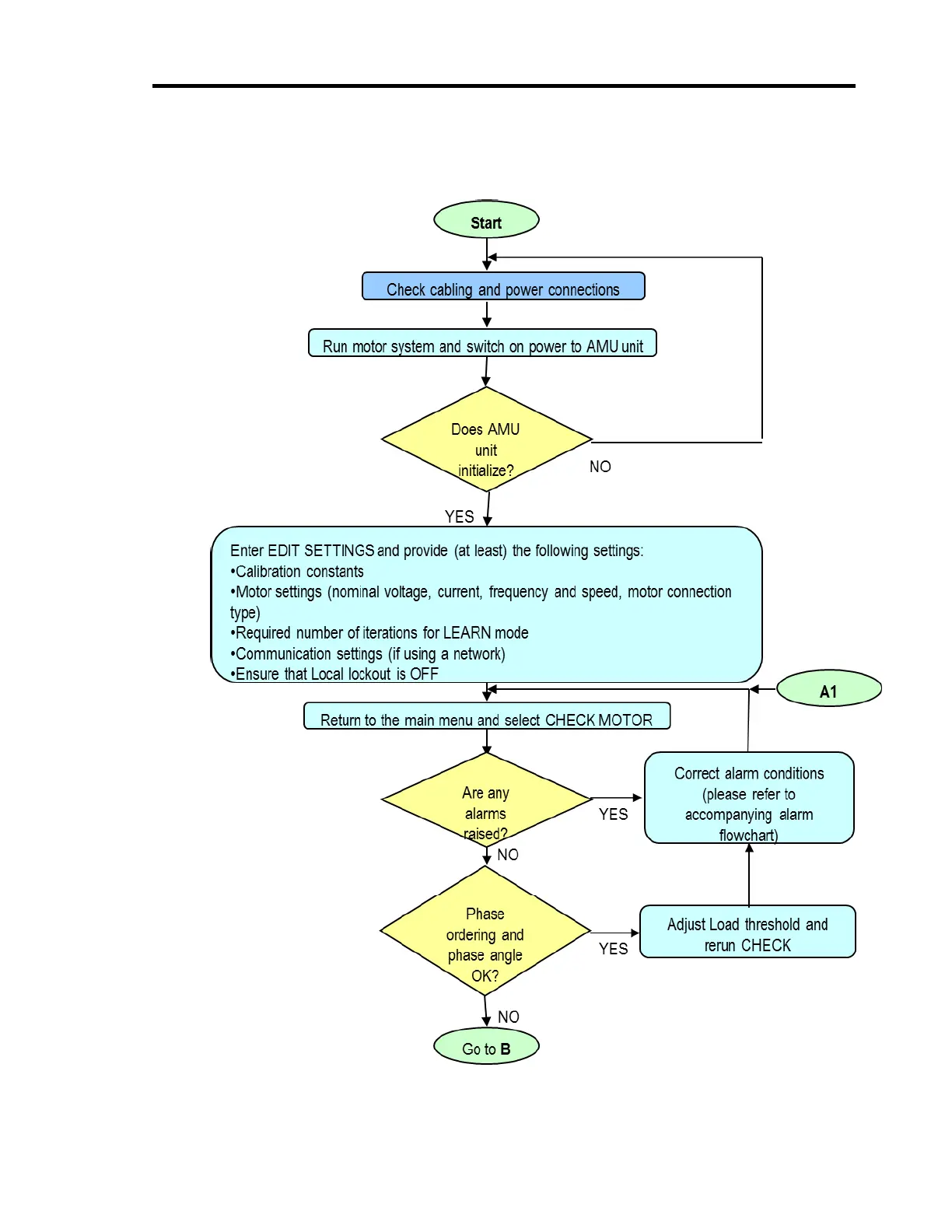 Artesis AMT Toolkit - Appendix 6: Flowcharts for AMU Use; Running AMU: Edit Settings and Check Motor