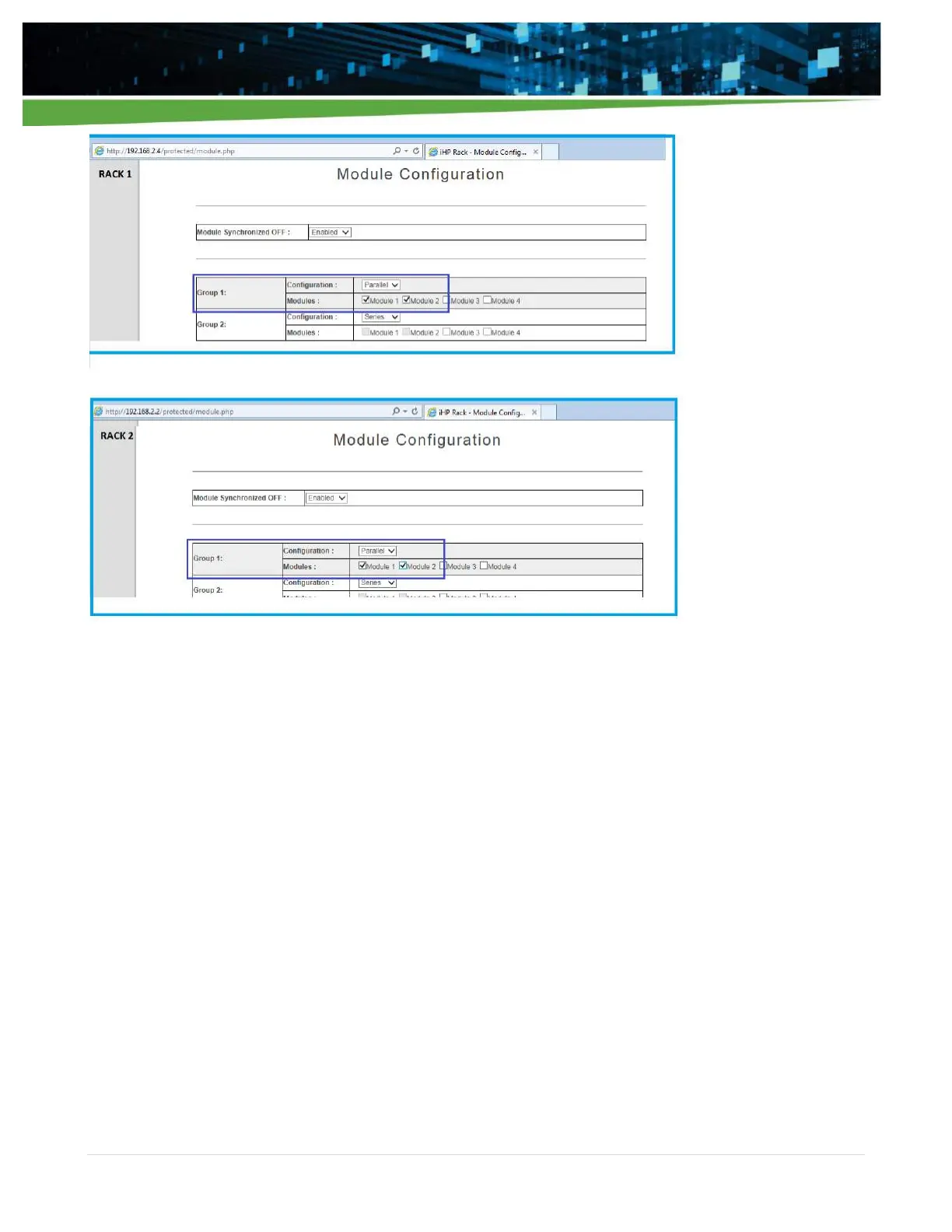 Above sample Multi Rack operation is using 2 units of iHP 12KW Rack with two modules each inserted per