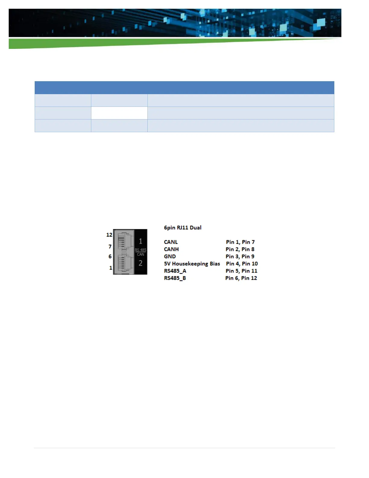 To communicate via RS485 or CAN communication user will need a 6pin RJ11 connector. There are two