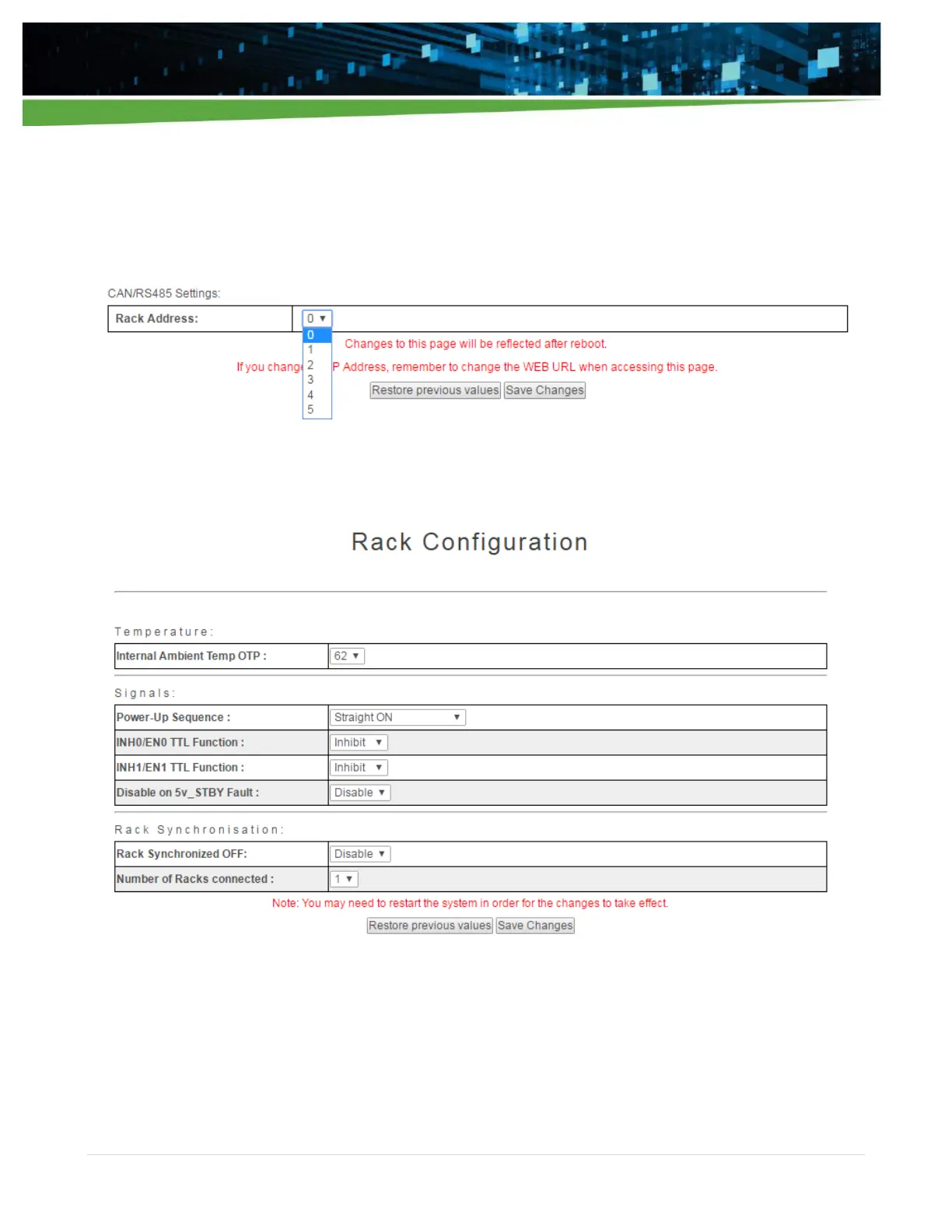 Configuration of rack-related parameters can be updated in this WebTool section.