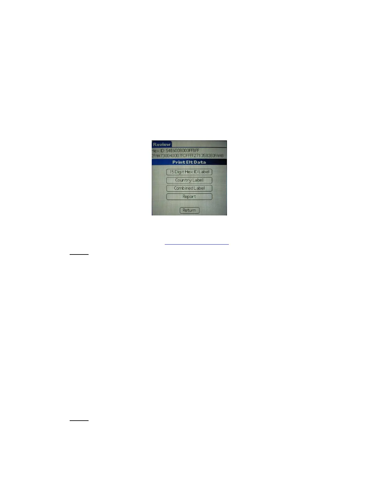 Both the 15-Digit Hex ID and Country Code labels can be printed to a serial printer via the