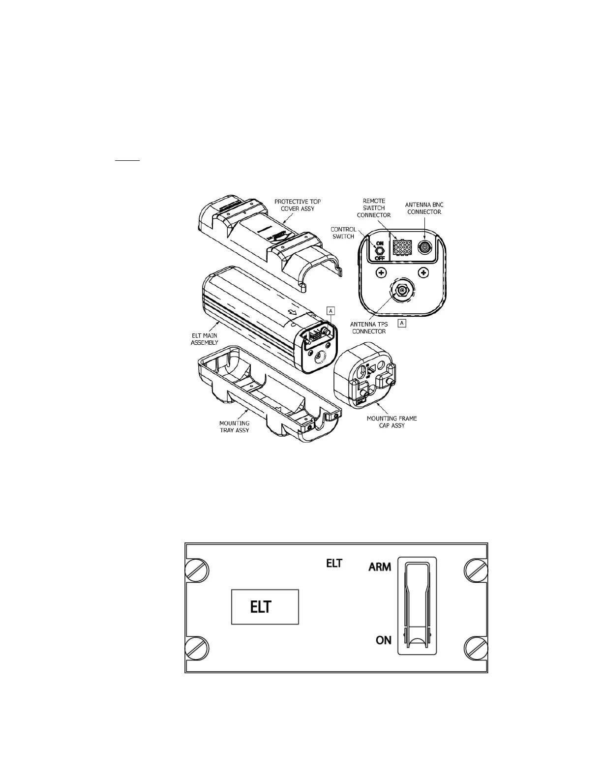 NOTE: The ELT main assembly and its mounting frame assembly are capable of withstanding