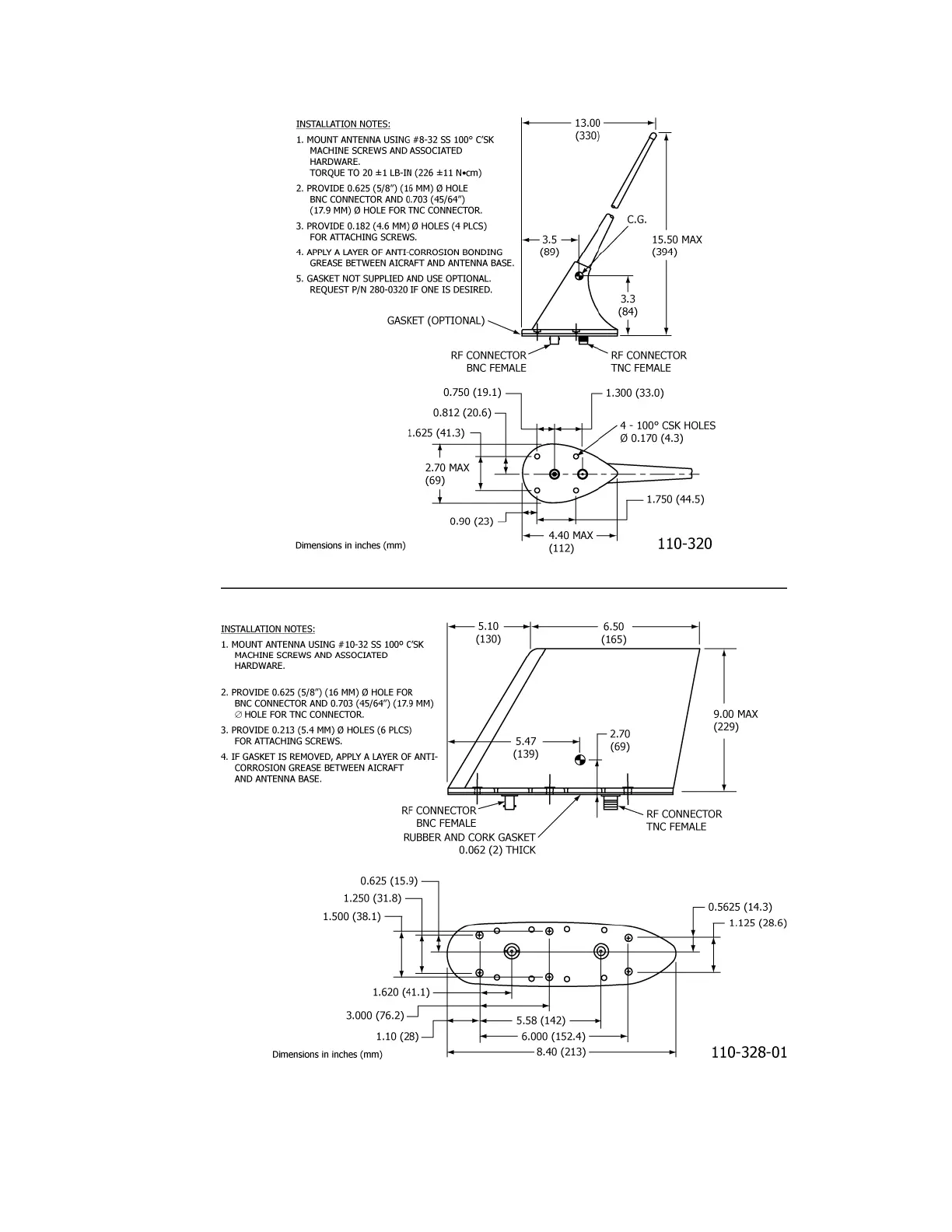 ARTEX B406-4 - Figure 15 Rod Antenna 110-320 and Blade Antenna 110-328-01 Outlines and Dimensions