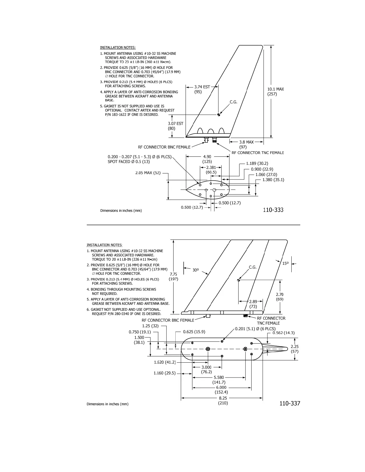 ARTEX B406-4 - Figure 16 Blade Antennas 110-333 and 110-337 Outlines and Dimensions