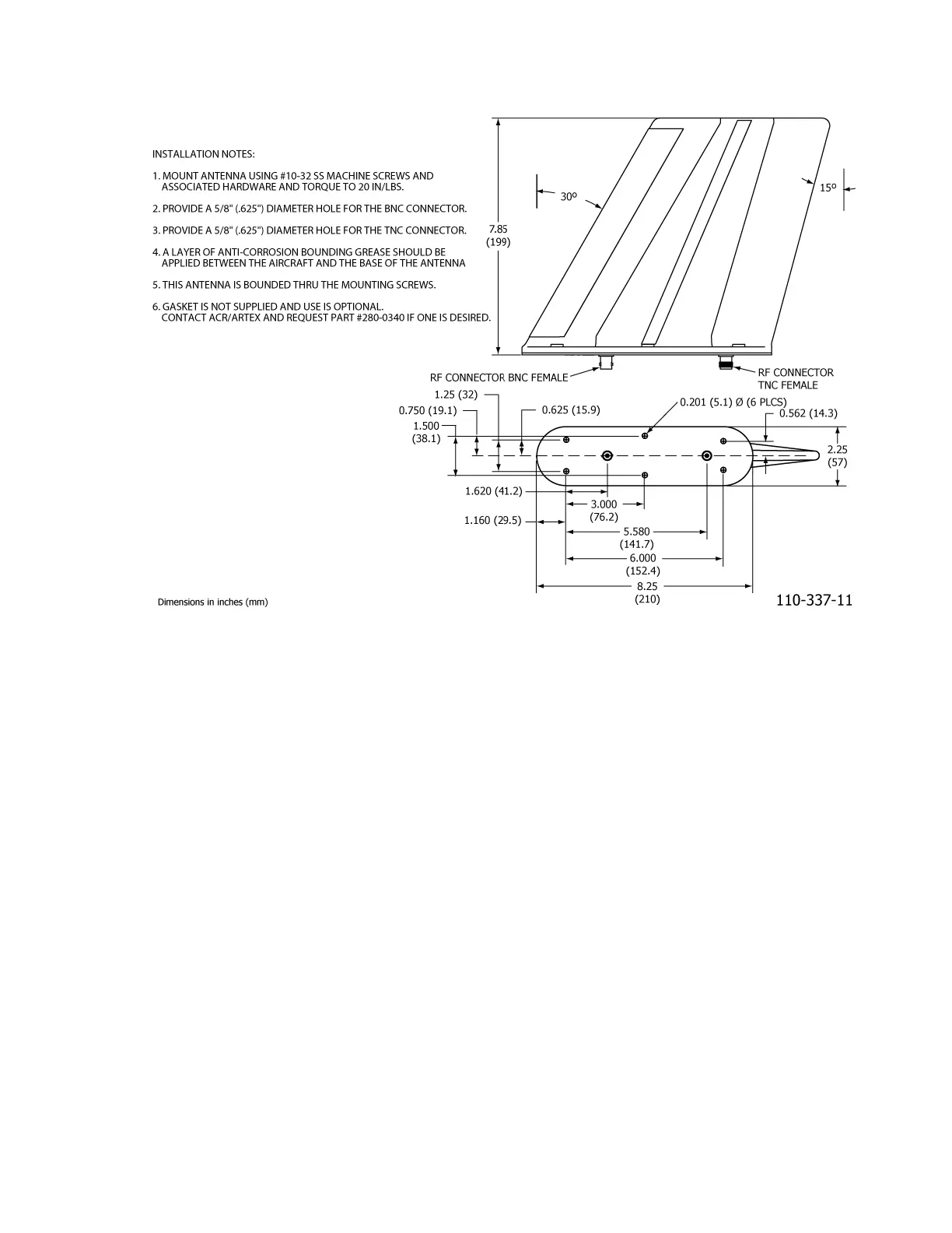 ARTEX B406-4 - Figure 17 Blade Antenna 110-337-11 Outline and Dimensions