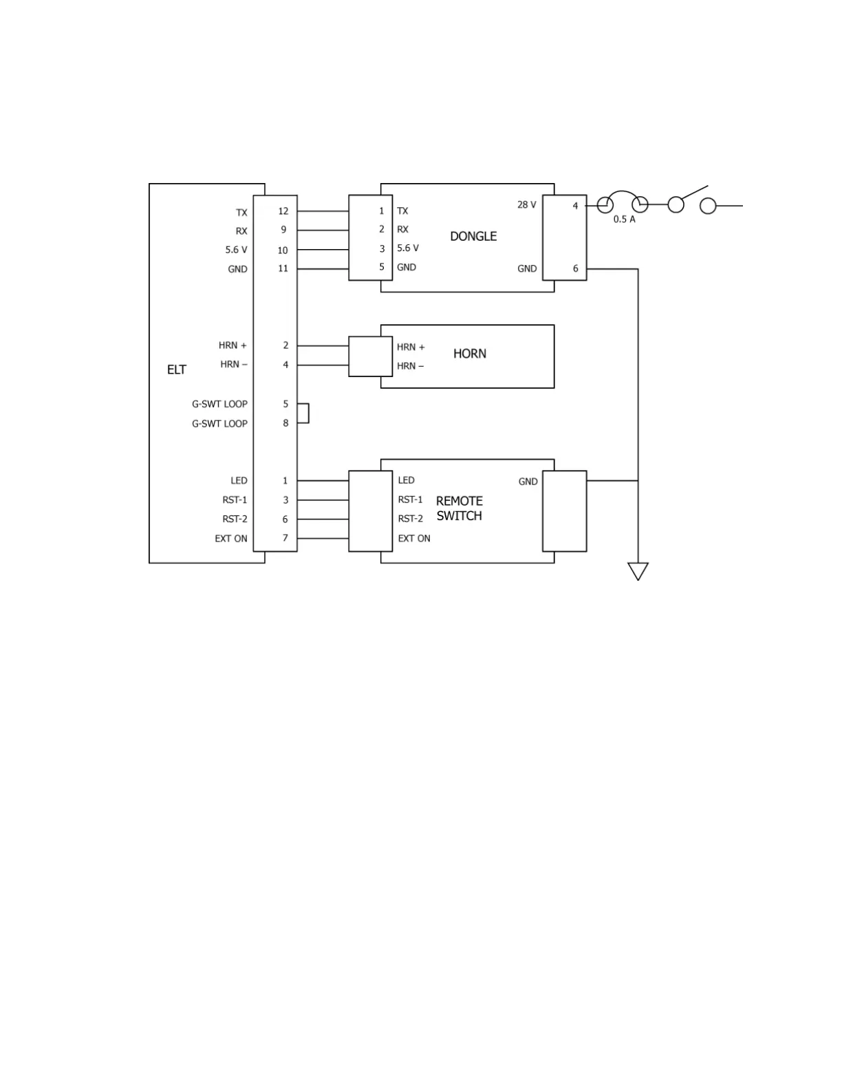 c) For Dongle installations on previously installed ELT, ground the un-terminated ground wire from the