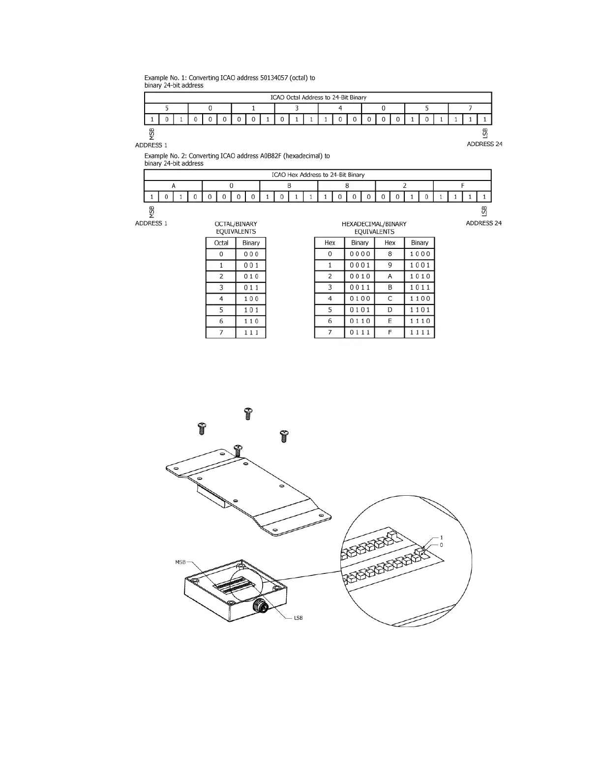 5) Set the 24-bit address switch block switches as appropriate for the 24-bit address binary code