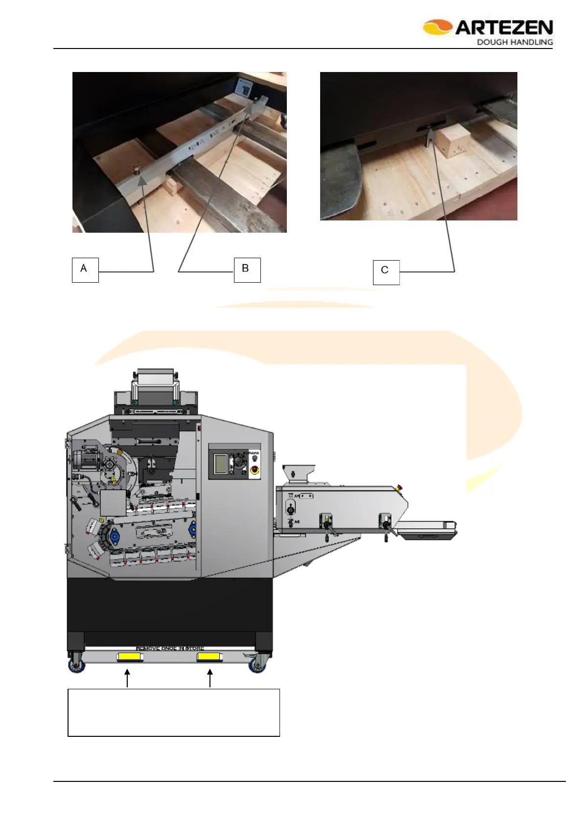 about 150 mm, then move the machine and place it slowly on the supporting floor. See also Figure 9.