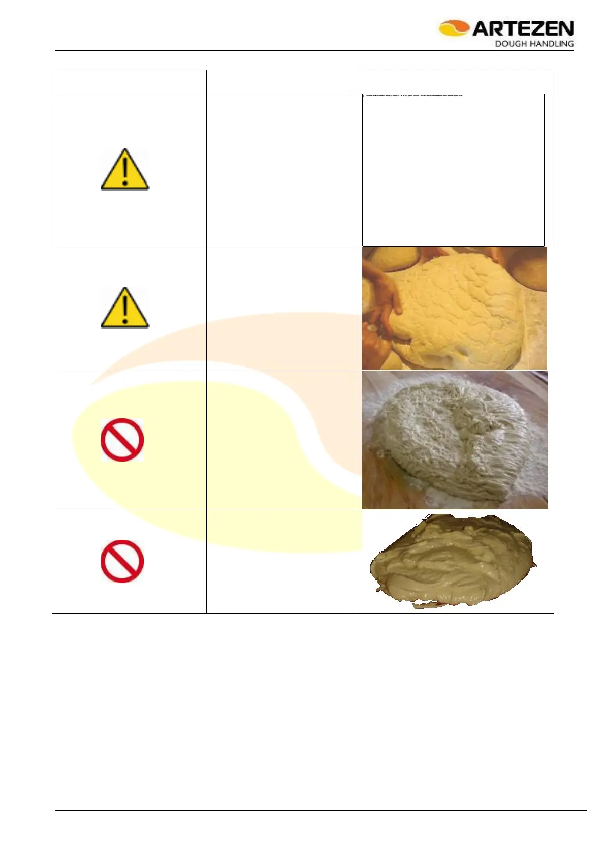 Table 5 - Type of workable dough and limitations