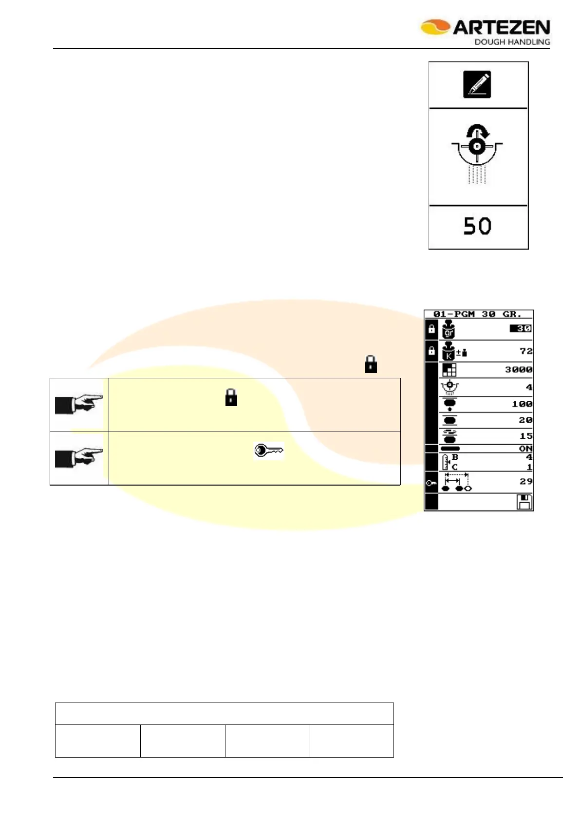 The functions of the table, highlighted in grey, CANNOT be changed after loading