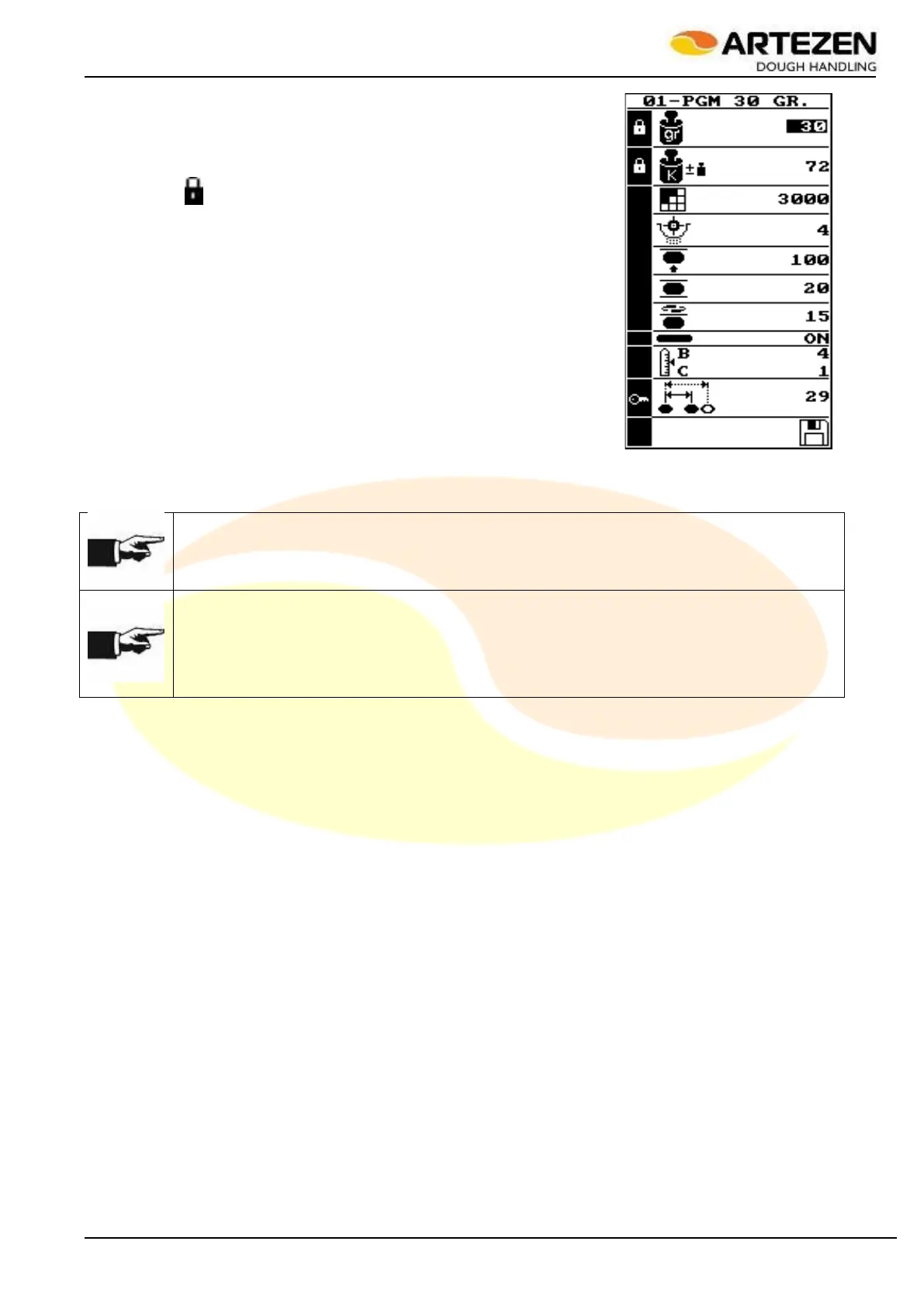 the value through the "DOUGH WEIGHT CORRECTION" function, as illustrated in par. 3.8.2: