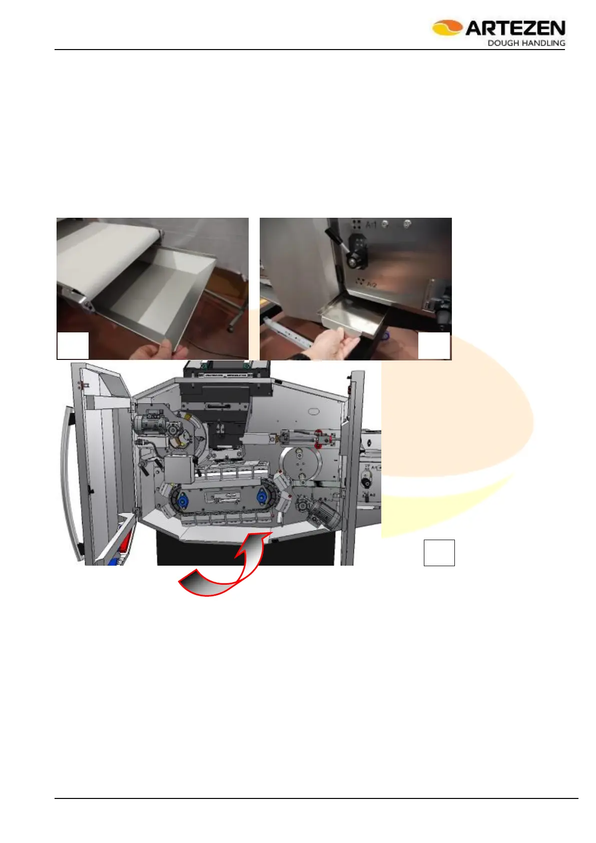 - Open the front door and completely remove all flour and dough residues produced during the processing.