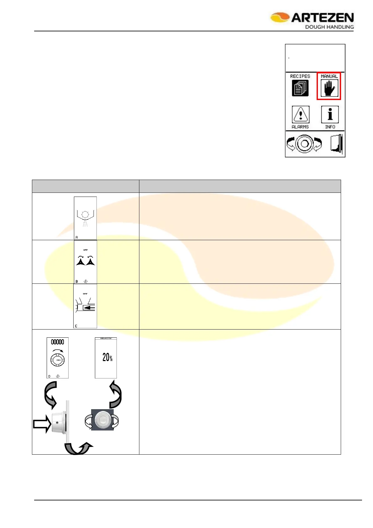 Each single movement can be started in manual mode by selecting the page relating to