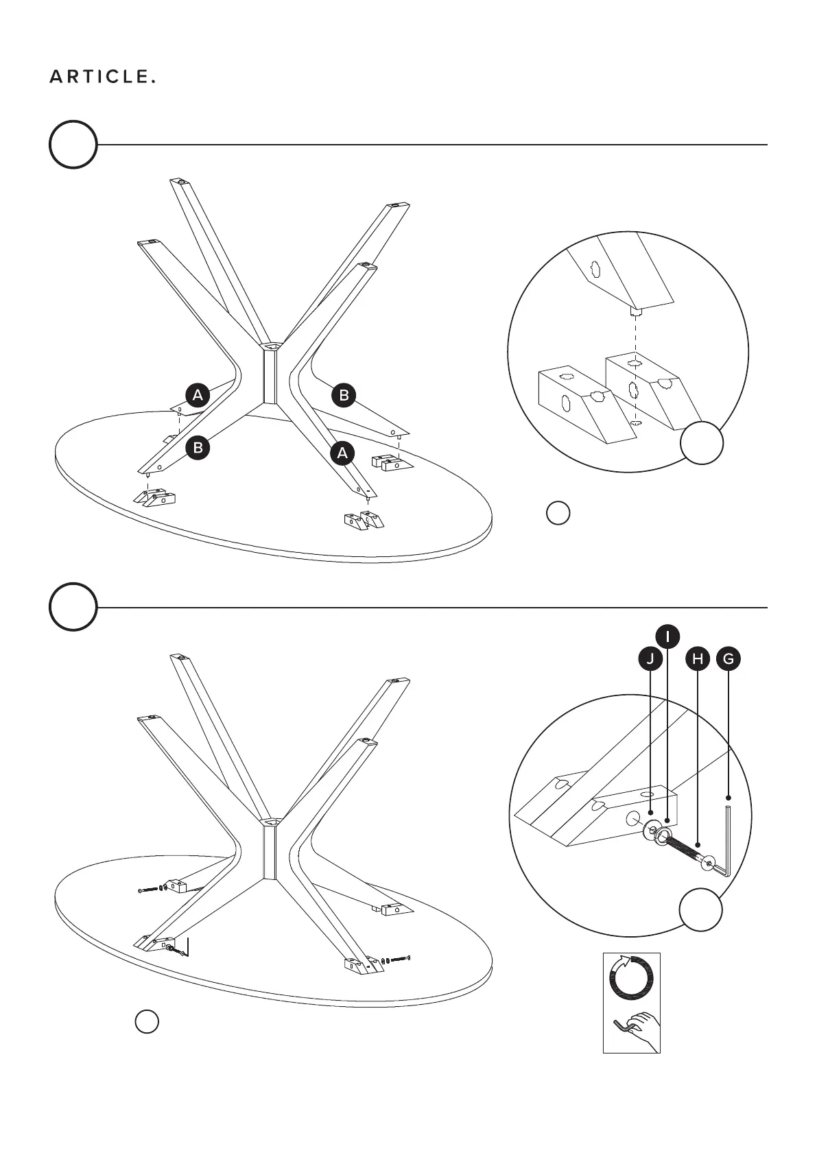 Article CONAN - Step 2 A: Align Legs to Tabletop; Step 2 B: Attach Legs to Tabletop