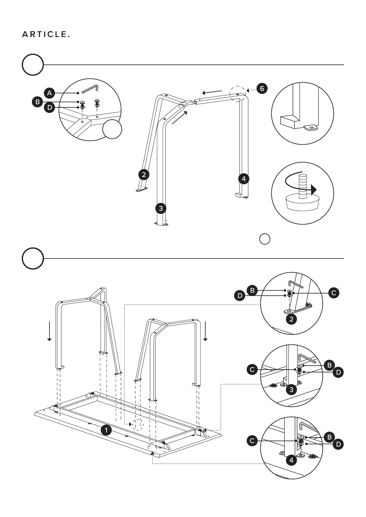 Article FULTON - Assemble Leg Structure; Attach Leg Assemblies to Tabletop