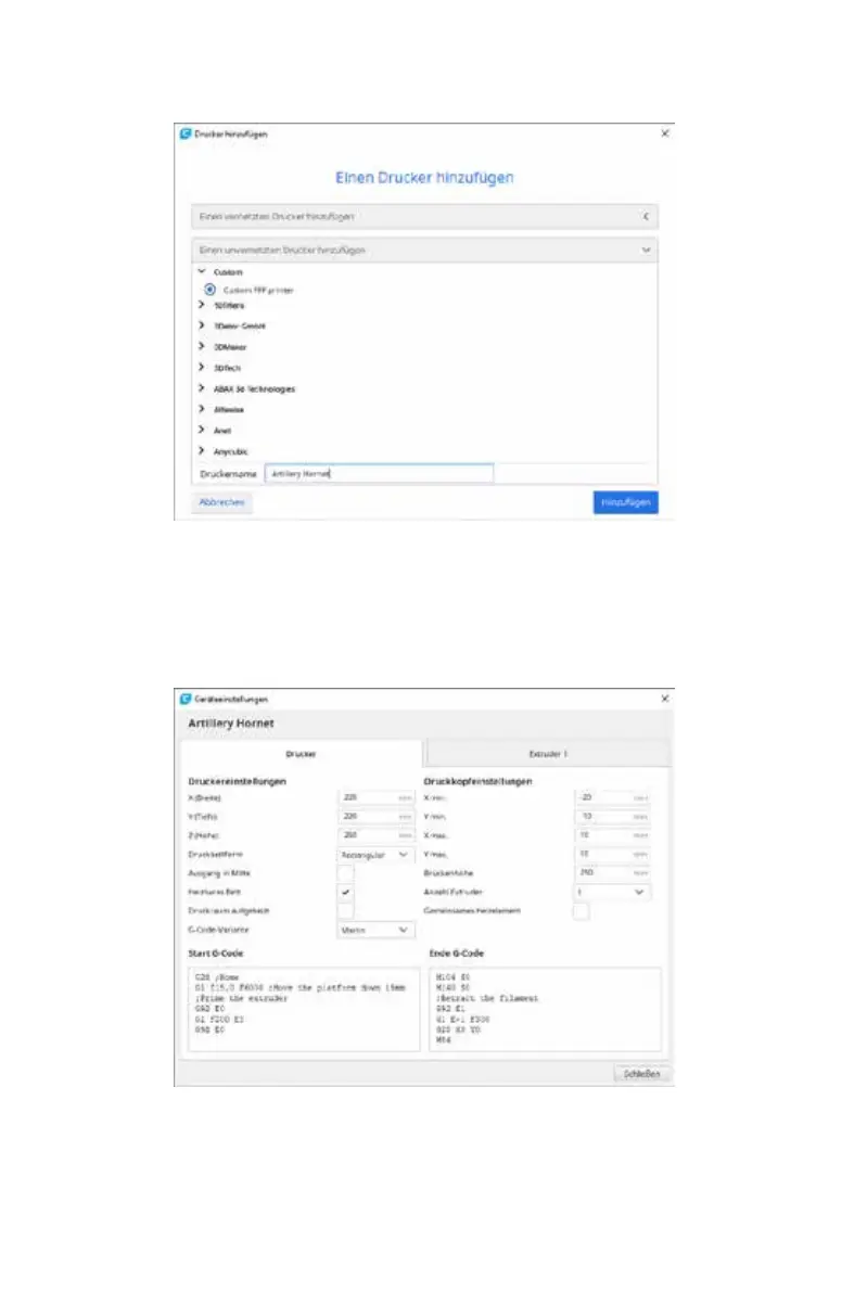 Sie Artillery Genius Pro als Druckername ein. Klicken Sie dann auf