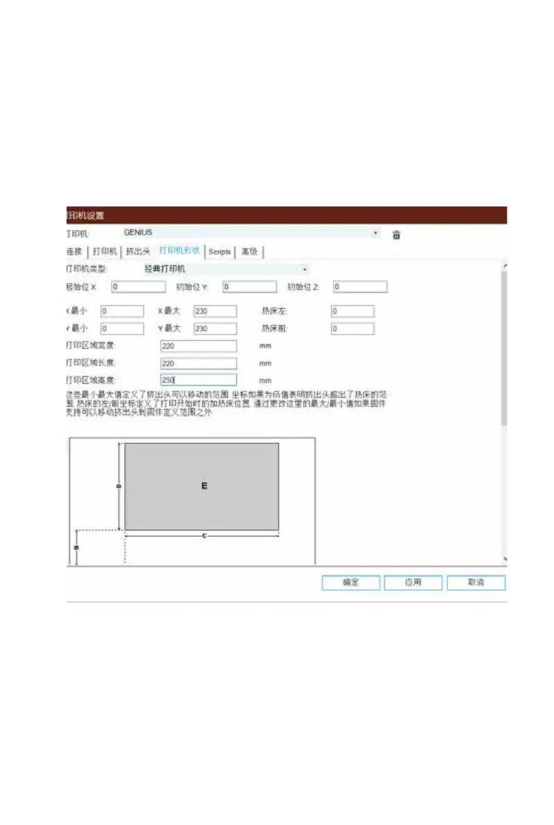 转到 打印机形状 选项卡,使用以下参数进行配置: